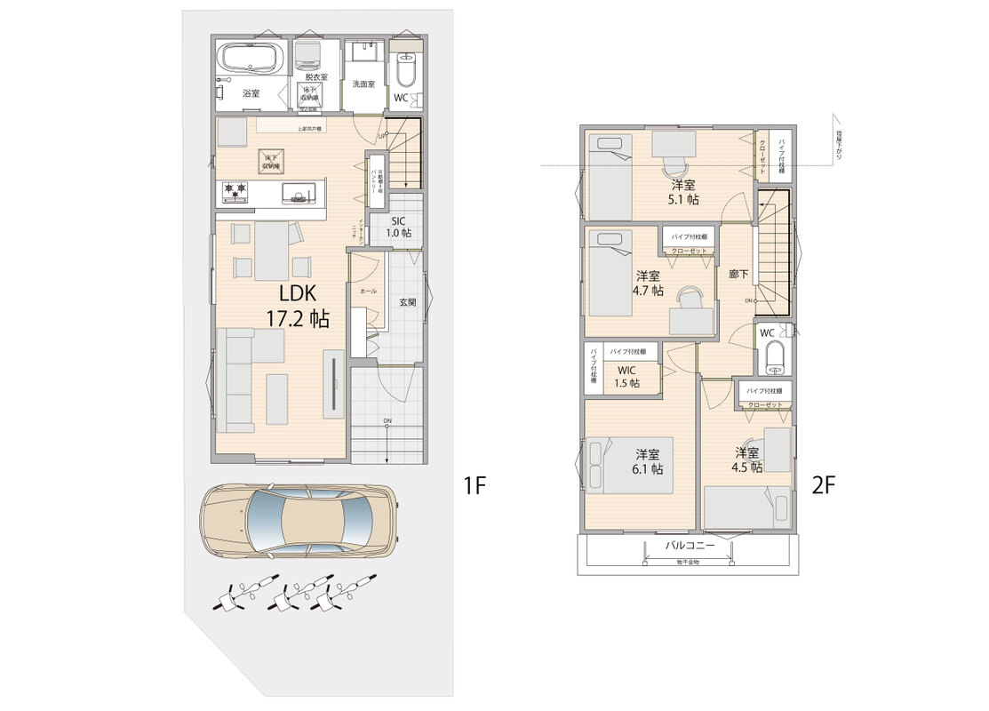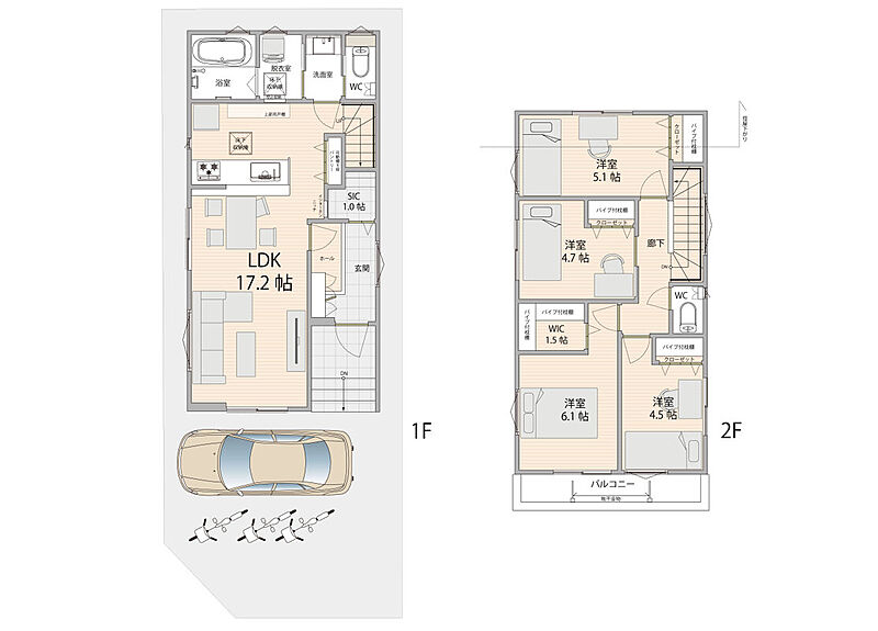- ※完成予想図やCG合成画像は、門塀・植栽・庭・外観等、実際とは多少異なる場合があります。