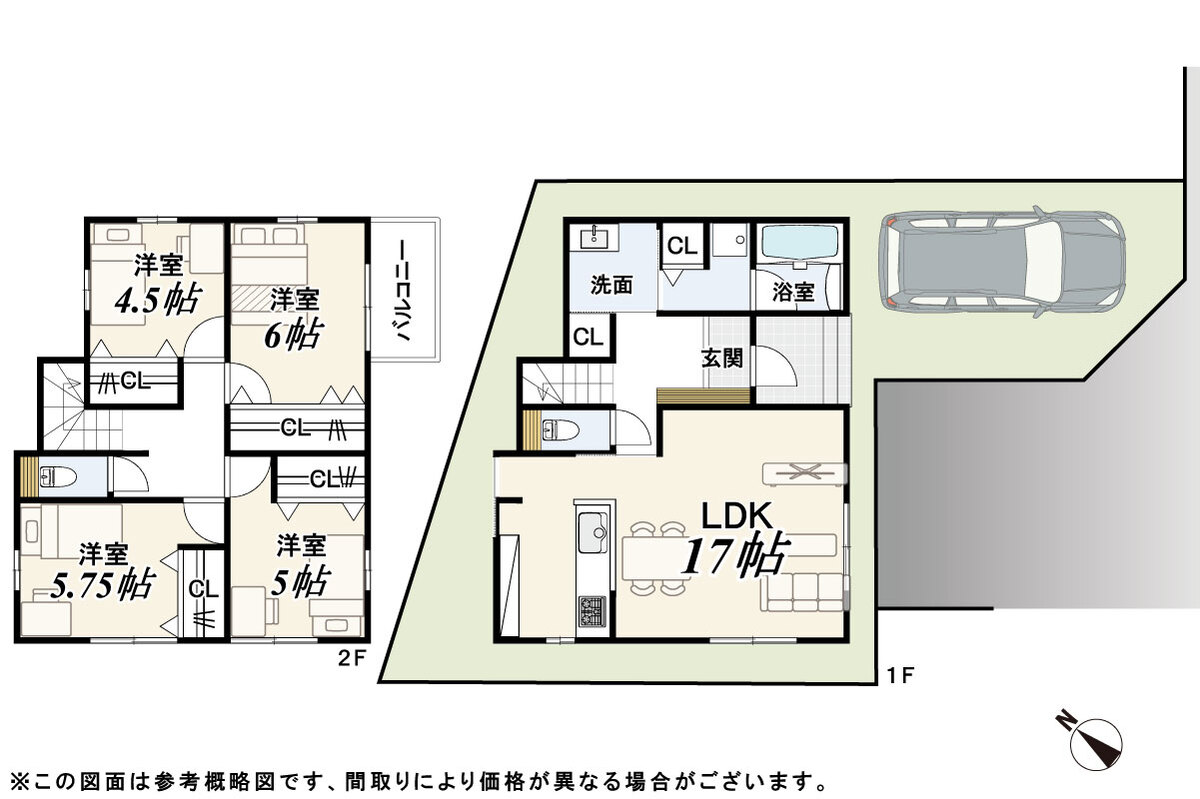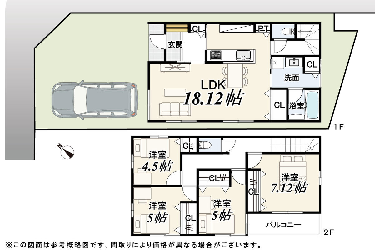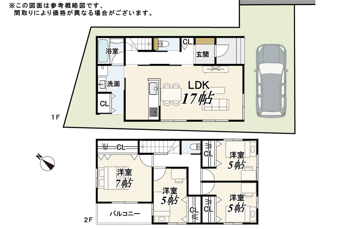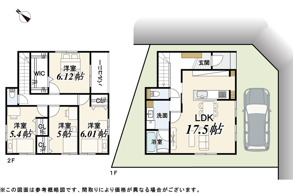 - ※完成予想図やCG合成画像は、門塀・植栽・庭・外観等、実際とは多少異なる場合があります。