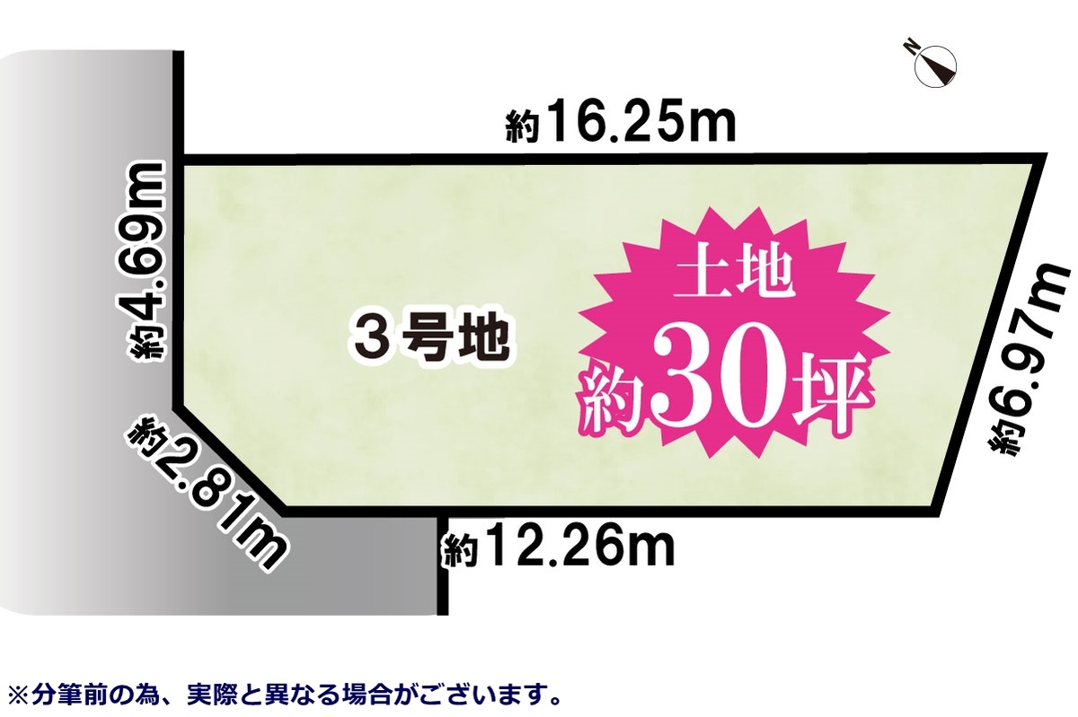 | 建築条件 | 建築条件付 建築条件付き土地とは一定期間内に、その土地に建築する建物の請負契約が締結されることを条件に販売される土地のことです。 土地売買契約締結後、建築請負会社と購入した土地に建築する建物について協議することになります。広告に参考プランが掲載されている場合でも、プランは一例であり、実際の建築プランは建築請負会社と土地購入者で協議・検討することが可能です。 期間内に建築プランが決まらず建築請負契約が成立しなければ土地売買契約は白紙となり、支払済みの金銭はすべて返還されます。 建築請負会社が指定されている場合と指定されていない場合があります。 また、建築条件付き土地の価格には、建物価格は含まれません。 |