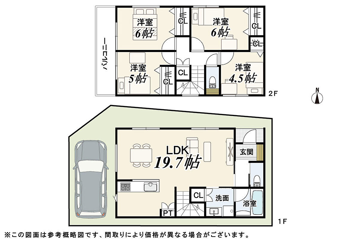 - ※完成予想図やCG合成画像は、門塀・植栽・庭・外観等、実際とは多少異なる場合があります。