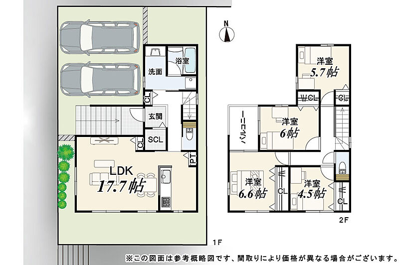 - ※完成予想図やCG合成画像は、門塀・植栽・庭・外観等、実際とは多少異なる場合があります。