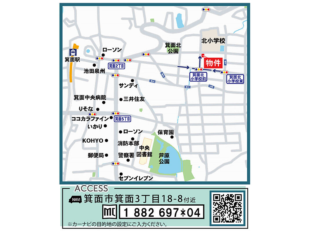 阪急箕面線「箕面」駅 徒歩7分 北大阪急行電鉄「箕面萱野」駅 徒歩22分 自転車 約8分 |