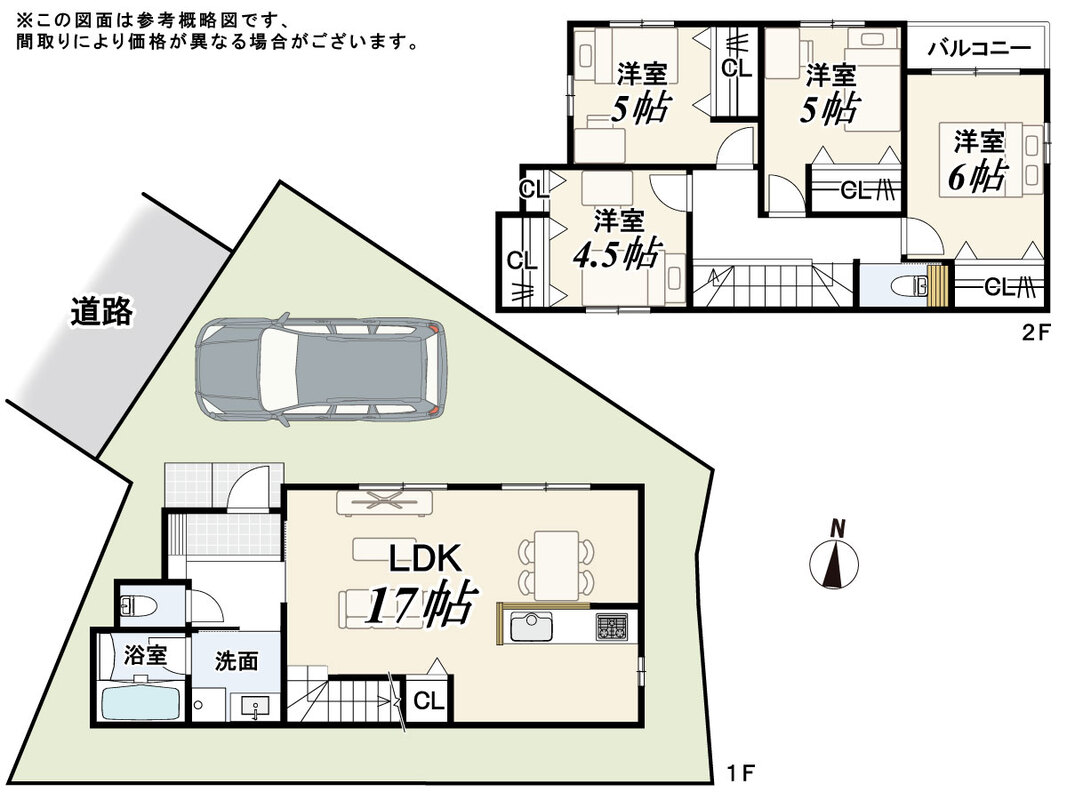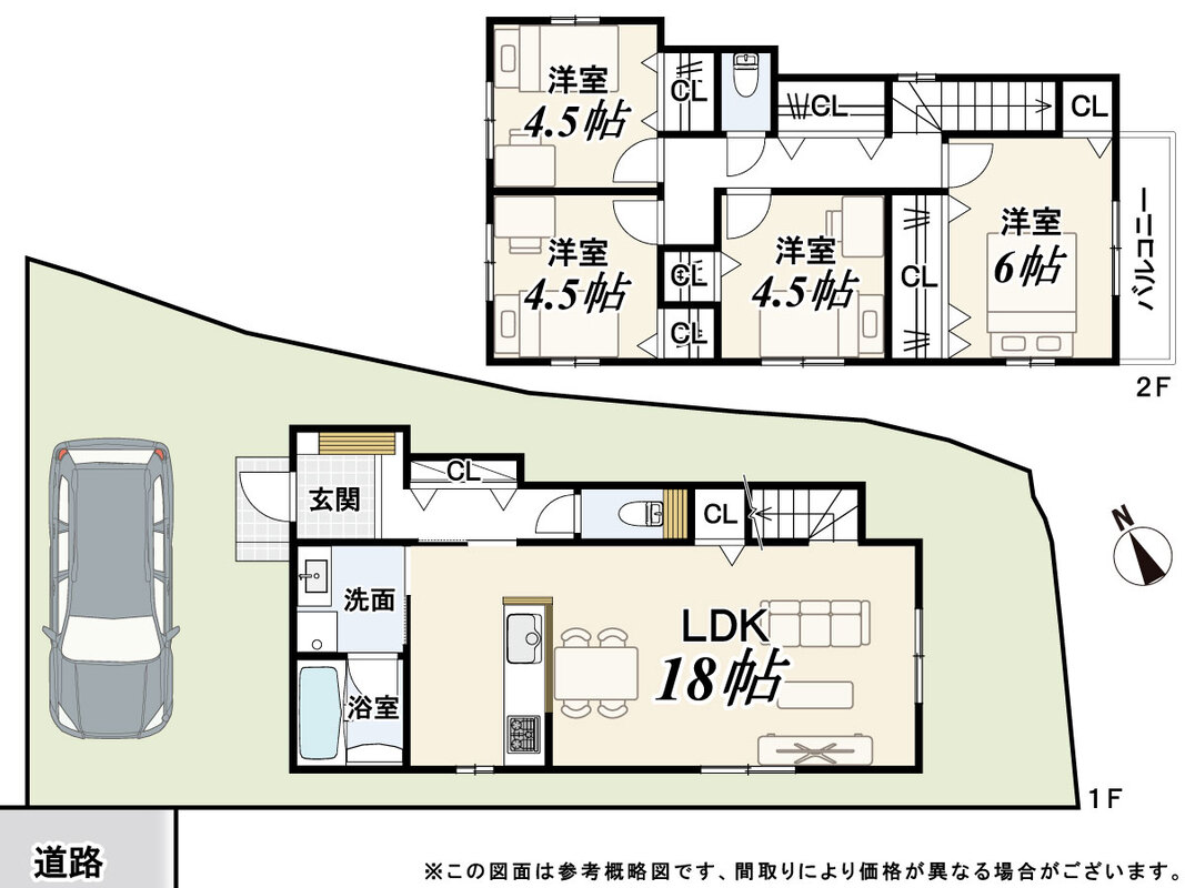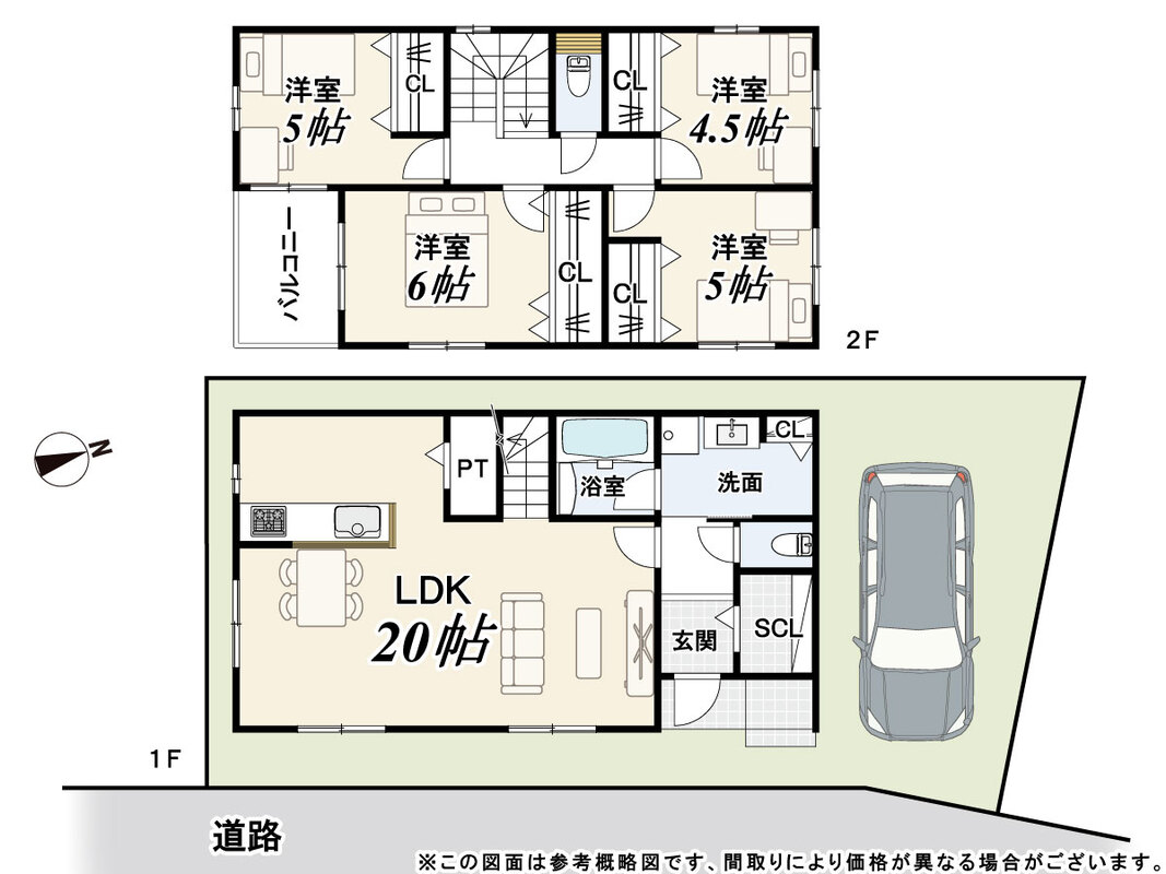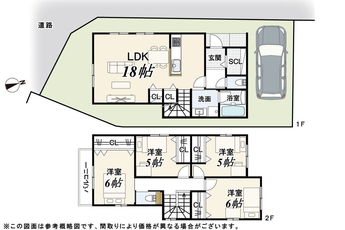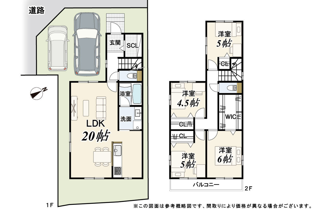 - ※完成予想図やCG合成画像は、門塀・植栽・庭・外観等、実際とは多少異なる場合があります。