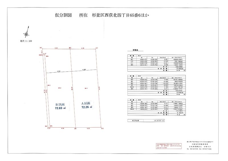 | 建物面積 | - | 土地面積 | 72.26m2(A区画)、72.83m2(B区画) |