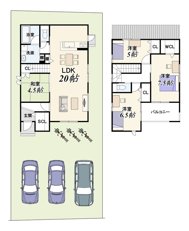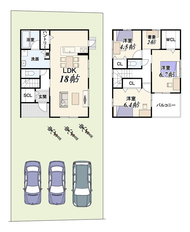 - ※完成予想図やCG合成画像は、門塀・植栽・庭・外観等、実際とは多少異なる場合があります。