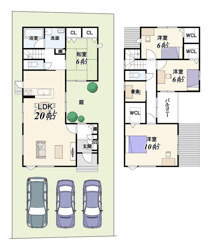 - ※完成予想図やCG合成画像は、門塀・植栽・庭・外観等、実際とは多少異なる場合があります。