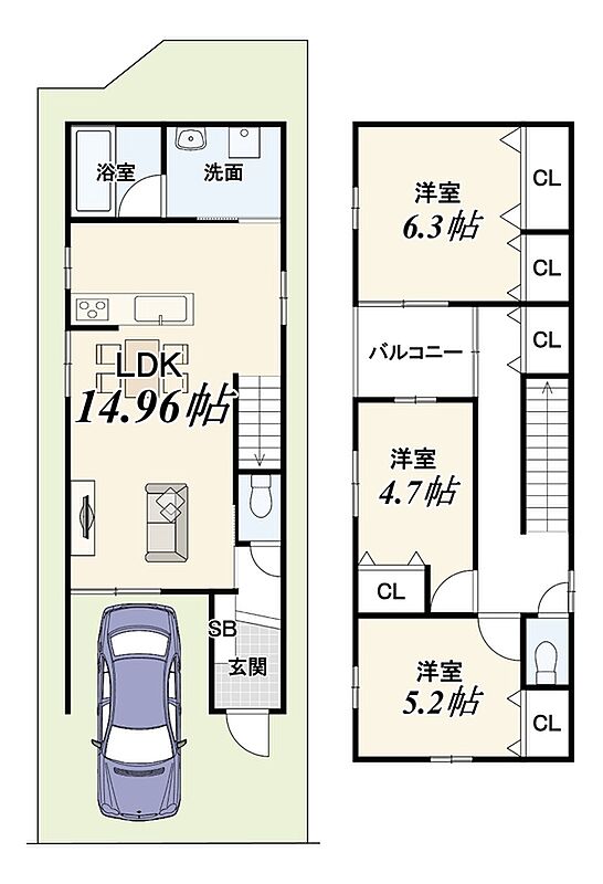 - ※完成予想図やCG合成画像は、門塀・植栽・庭・外観等、実際とは多少異なる場合があります。