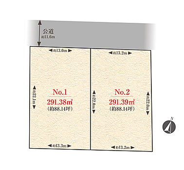 | 建物面積 | - | 土地面積 | 291.38m2(No.1),291.39m2(No.2) |