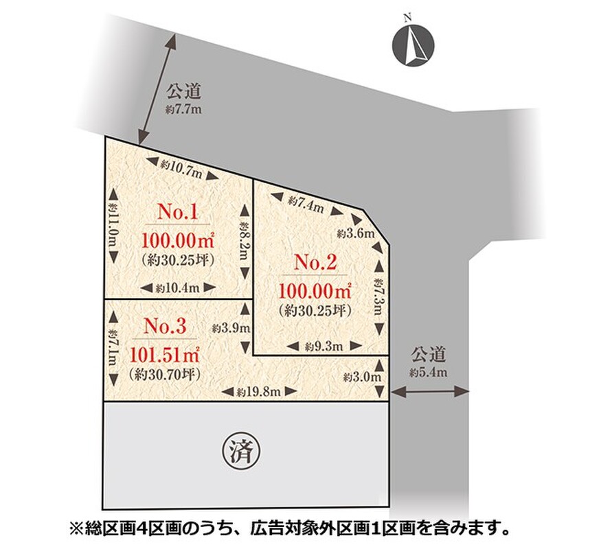 | 建物面積 | - | 土地面積 | 100.00m2(No.1、No.2)、101.51m2(No.3) |