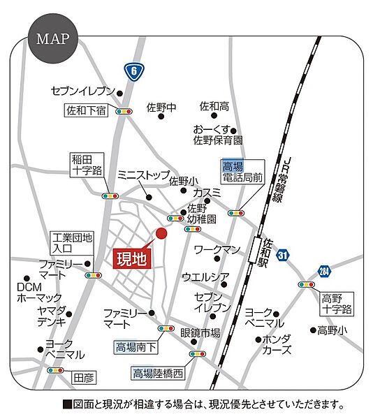 - ※地図、航空写真情報および地形ならびに周辺のお店・施設は、必ずしも現況を表すものではありません。