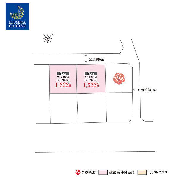 | 主たる設備の概要 | 公営水道・合併浄化槽(公共下水予定有)・個別プロパン | 開発許可番号 | 完成済みのため省略 |