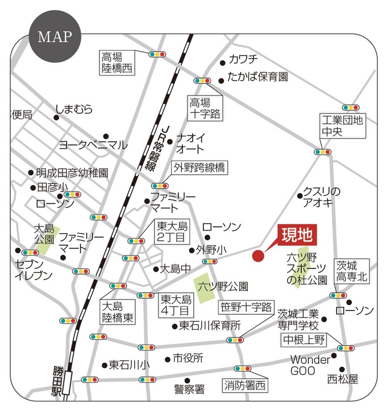 | 所在地 | 茨城県ひたちなか市水戸・勝田都市計画事業六ツ野土地区画整理事業 仮換地街区141-2符号4-2、4-6、4-7、4-8 | ||