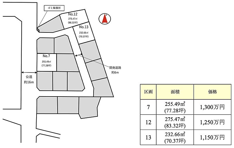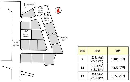 | 駐車場 | - | 道路の幅員 | 開発道路 約6m、公道 約16m |