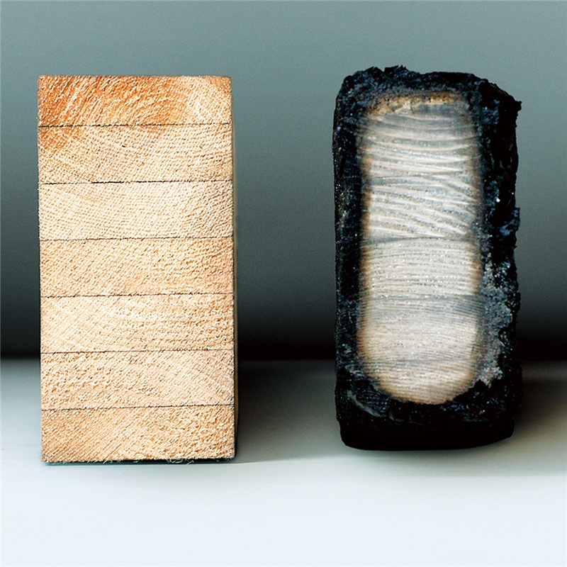 表面の炭化層が燃焼を遅らせます