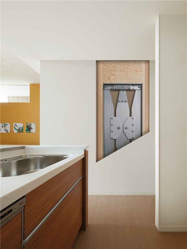 地震エネルギーを吸収し揺れを抑えるミサワホーム制震パネ「MGEO」。
