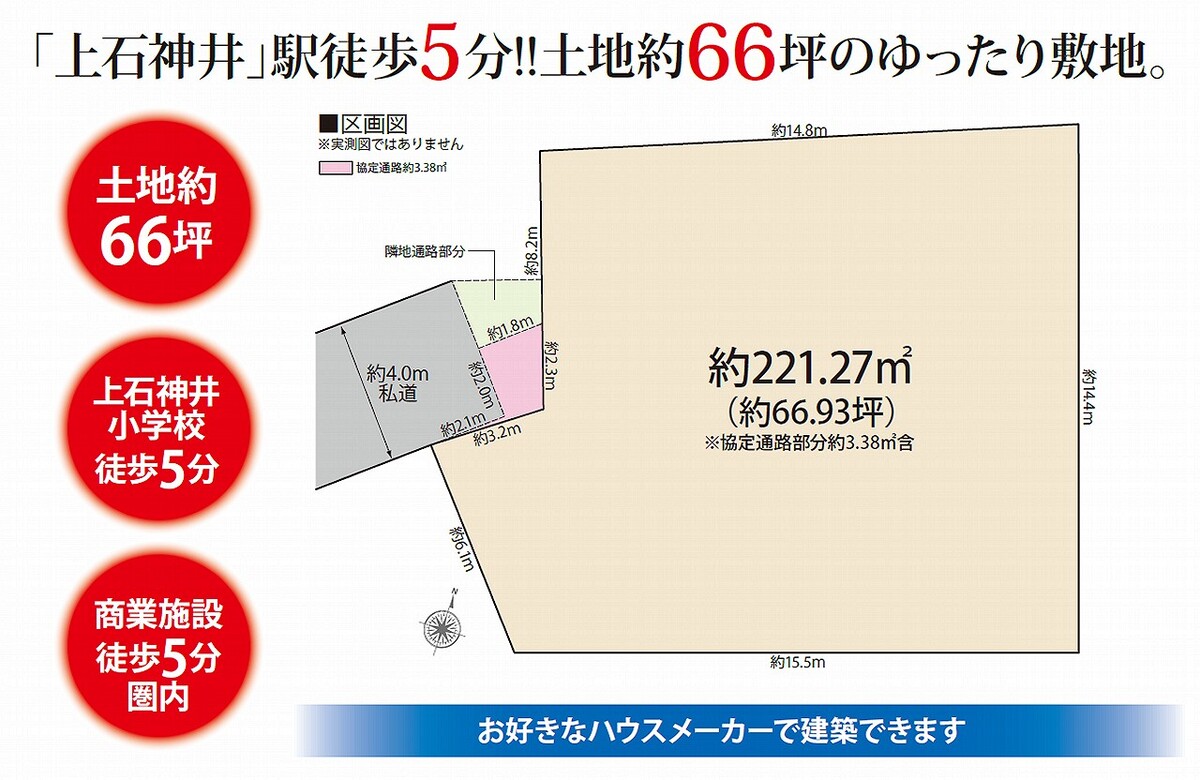 西武新宿線「上石神井」駅徒歩5分!土地約66坪のゆったり敷地!建築条件無し