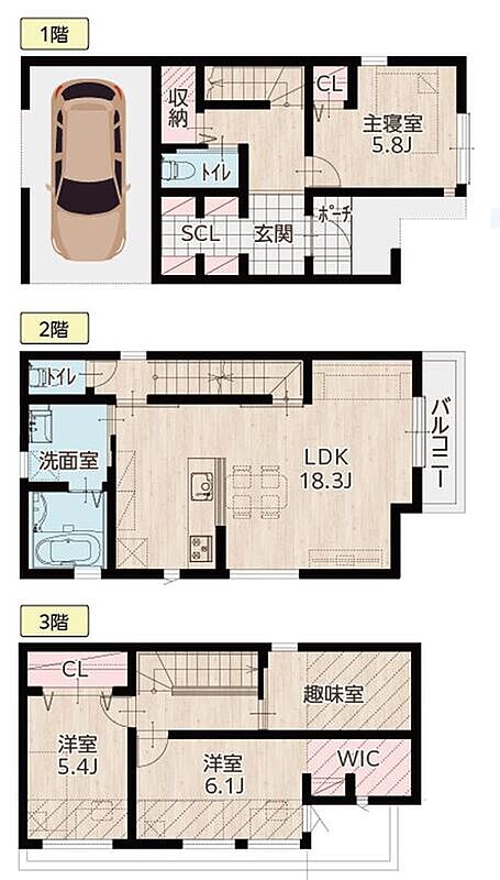 - ※完成予想図やCG合成画像は、門塀・植栽・庭・外観等、実際とは多少異なる場合があります。