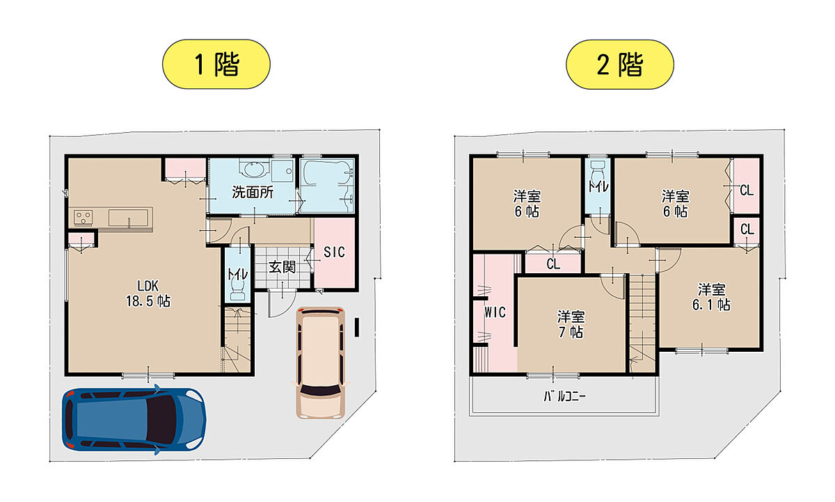 - ※完成予想図やCG合成画像は、門塀・植栽・庭・外観等、実際とは多少異なる場合があります。
