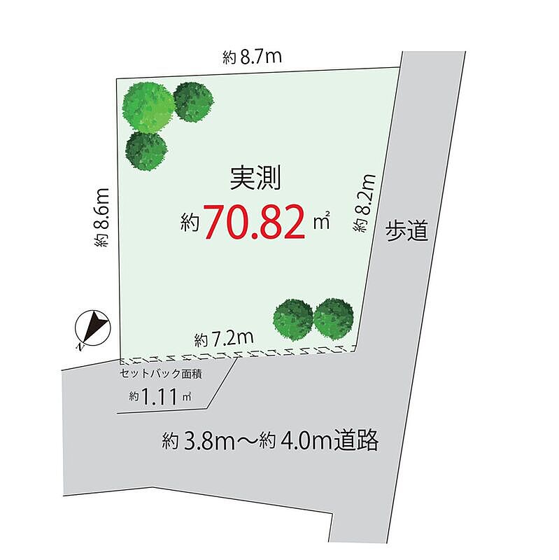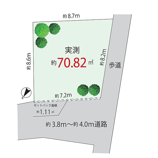 | 駐車場 | - | 道路の幅員 | セットバック有 (【面積】1.11m2 ) |