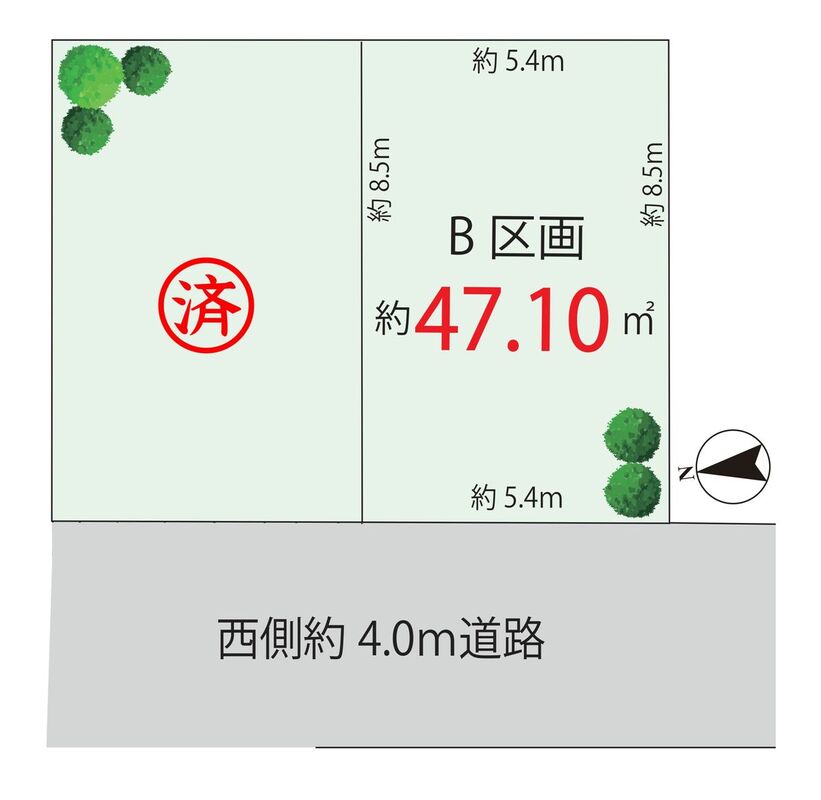| 建築条件 | 建築条件付 建築条件付き土地とは一定期間内に、その土地に建築する建物の請負契約が締結されることを条件に販売される土地のことです。 土地売買契約締結後、建築請負会社と購入した土地に建築する建物について協議することになります。広告に参考プランが掲載されている場合でも、プランは一例であり、実際の建築プランは建築請負会社と土地購入者で協議・検討することが可能です。 期間内に建築プランが決まらず建築請負契約が成立しなければ土地売買契約は白紙となり、支払済みの金銭はすべて返還されます。 建築請負会社が指定されている場合と指定されていない場合があります。 また、建築条件付き土地の価格には、建物価格は含まれません。 |