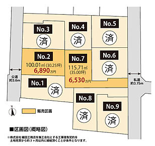 | 建物面積 | - | 土地面積 | 100.01m2(30.25坪)・115.71m2(35.00坪) |