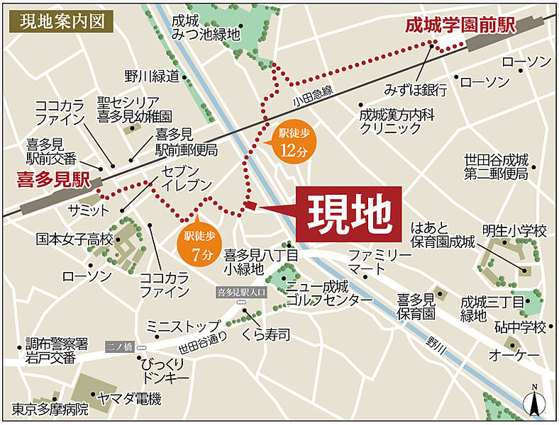 小田急小田原線「喜多見」駅 徒歩7分 小田急小田原線「成城学園前」駅 徒歩12分 |