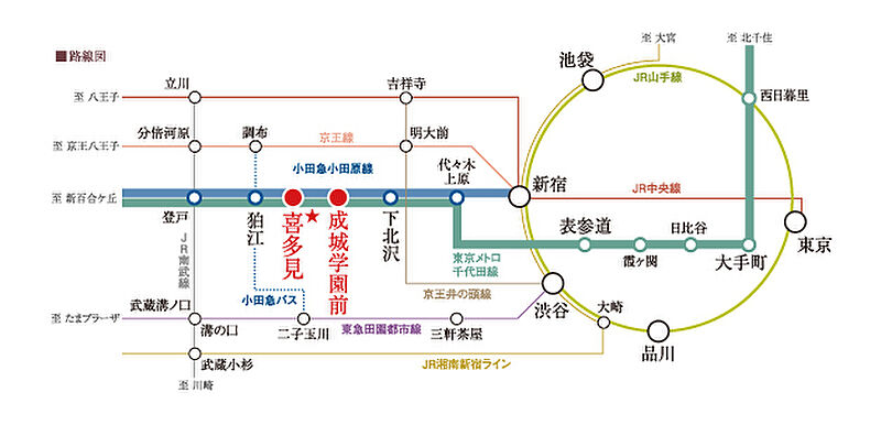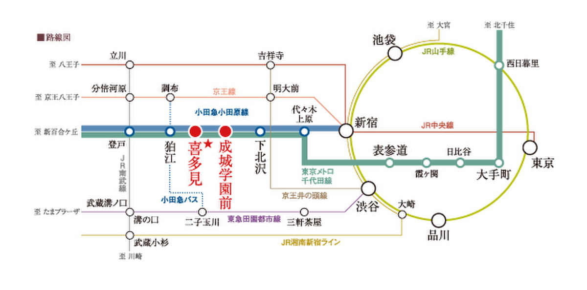 魅力1 小田急線「喜多見」駅、「成城学園前」駅2駅利用可能な好立地