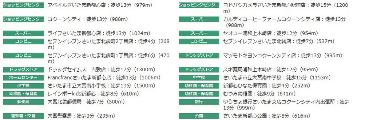 JR京浜東北・根岸線「さいたま新都心」駅 徒歩15分 JR京浜東北・根岸線「与野」駅 徒歩19分 JR埼京線「北与野」駅 徒歩23分 |