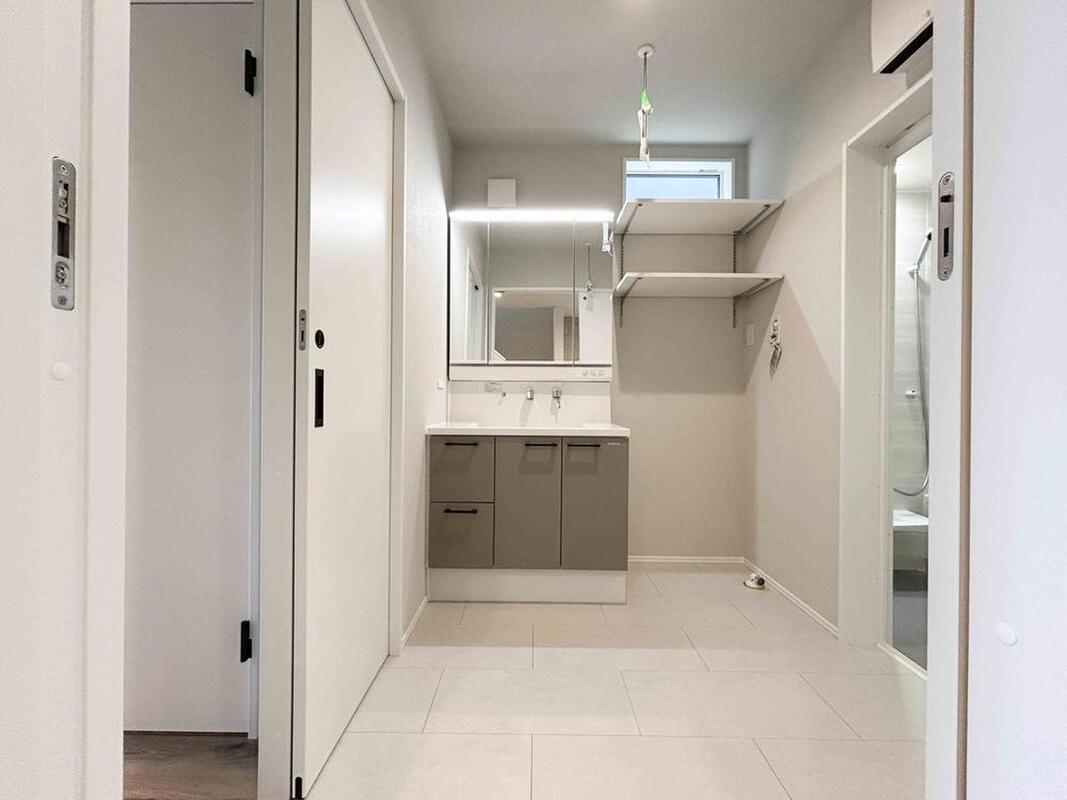 洗面室は、廊下とLDKから出入り可能な2WAY仕様です。スマー...