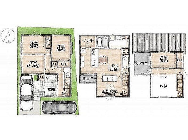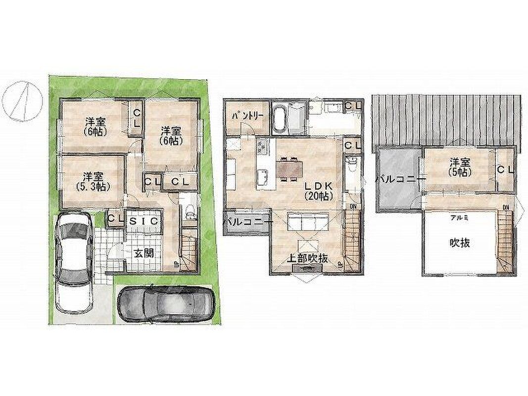 - ※完成予想図やCG合成画像は、門塀・植栽・庭・外観等、実際とは多少異なる場合があります。
