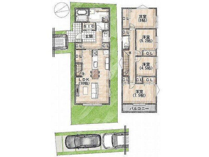 - ※完成予想図やCG合成画像は、門塀・植栽・庭・外観等、実際とは多少異なる場合があります。