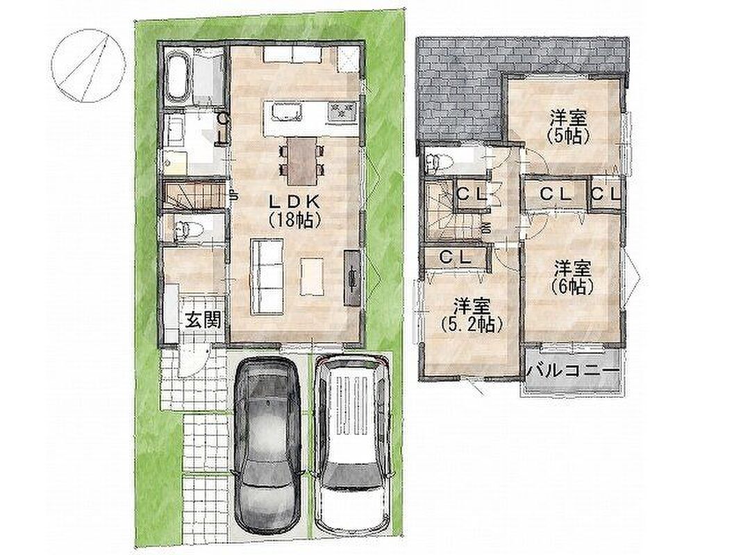 - ※完成予想図やCG合成画像は、門塀・植栽・庭・外観等、実際とは多少異なる場合があります。