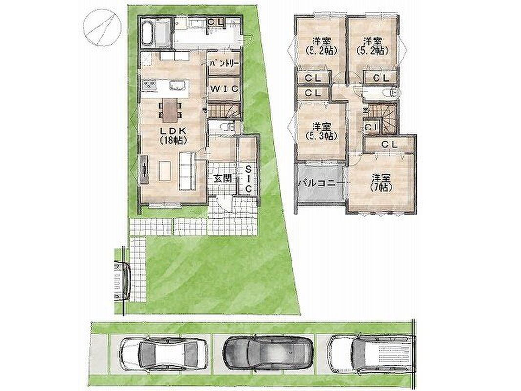 - ※完成予想図やCG合成画像は、門塀・植栽・庭・外観等、実際とは多少異なる場合があります。