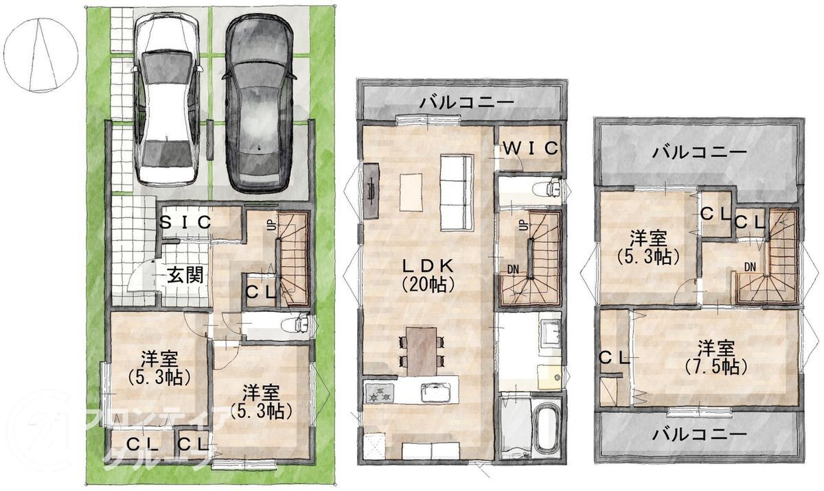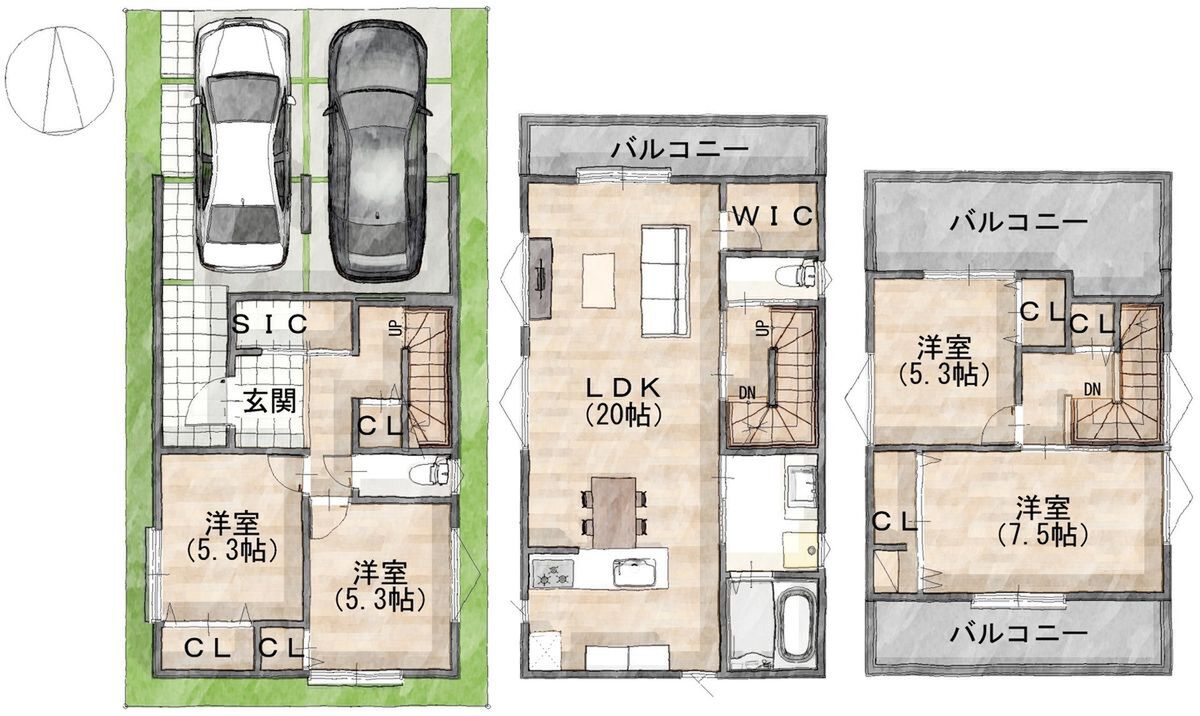 - ※完成予想図やCG合成画像は、門塀・植栽・庭・外観等、実際とは多少異なる場合があります。