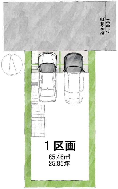 | 駐車場 | - | 道路の幅員 | 道路幅4.6m 接道状態(一方道路)接道(1)(公道【方角】北【幅員】4.6m【接面】6.6m) |