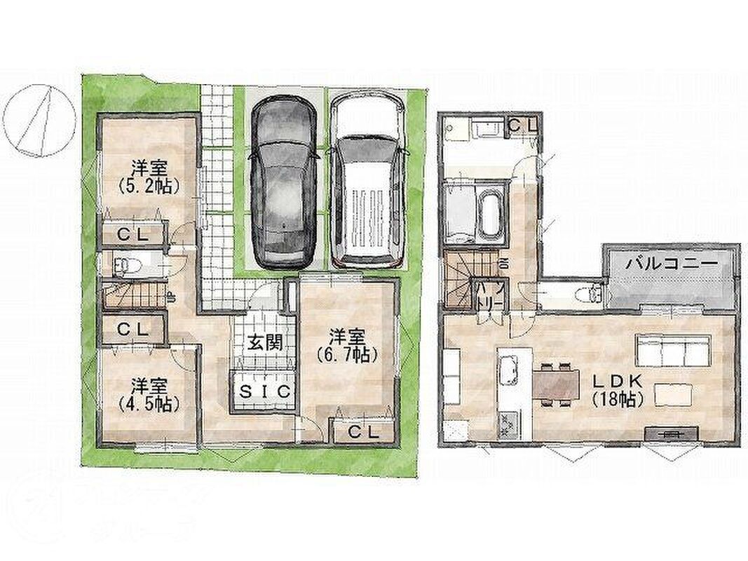 - ※完成予想図やCG合成画像は、門塀・植栽・庭・外観等、実際とは多少異なる場合があります。