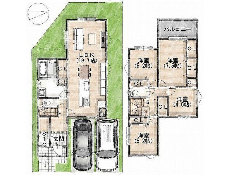 - ※完成予想図やCG合成画像は、門塀・植栽・庭・外観等、実際とは多少異なる場合があります。