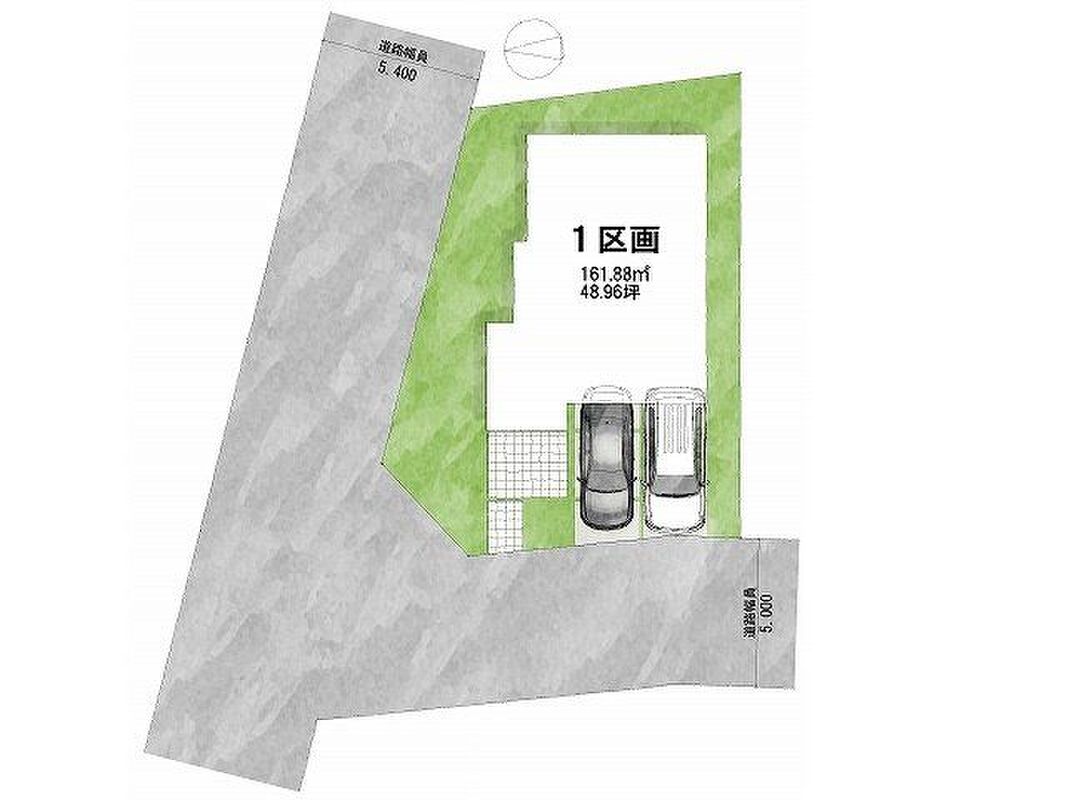 | 駐車場 | - | 道路の幅員 | 接道状態(二方道路)接道(1)(公道【方角】北【幅員】5.4m【接面】12.3m) |