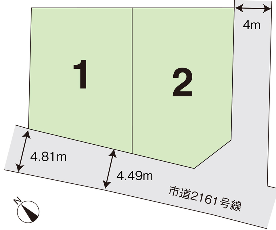 | 駐車場 | - | 道路の幅員 | 南西側:4.49~4.81m(市道2161号線) 南東側:4m(位置指定道路) |