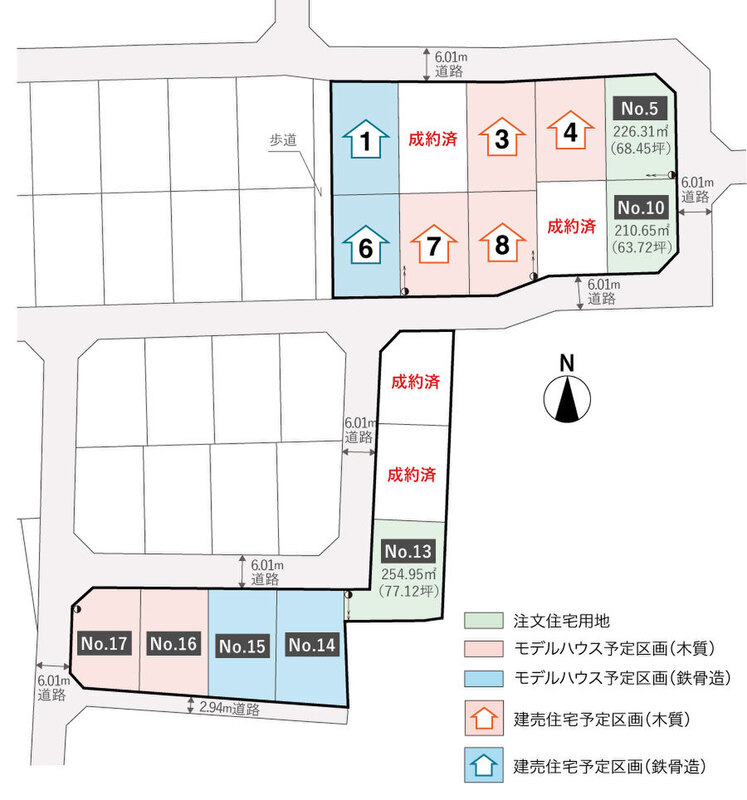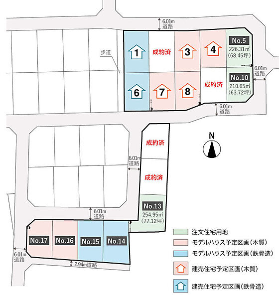 | 建物面積 | - | 土地面積 | 210.65m2 (63.72坪)1区画 ~ 254.95m2 (77.12坪)1区画※確定測量後、面積が変わる場合がございます。 |
