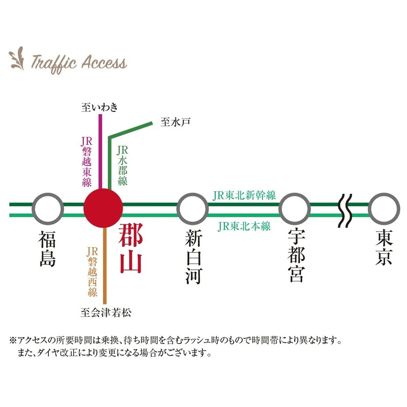 郡山駅よりJR東北新幹線利用可能!仕事や旅行、帰省も楽々!