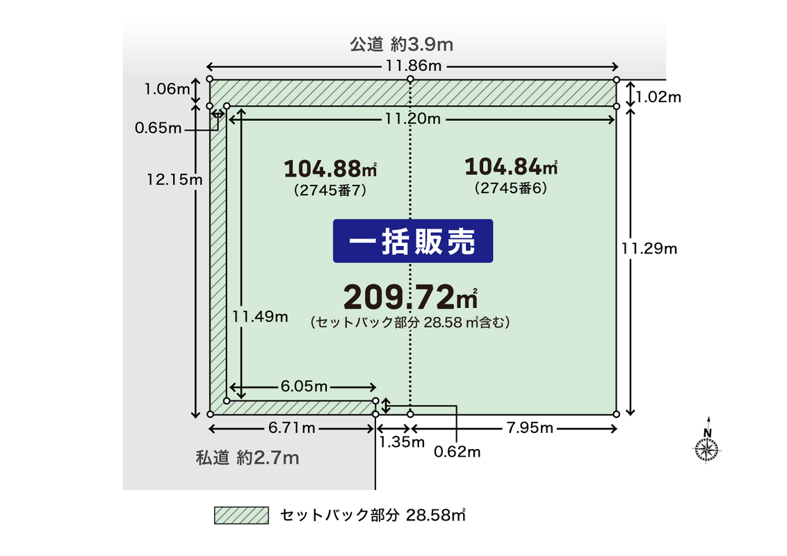 | 建物面積 | - | 土地面積 | 209.72m2(63.44坪)(実測)※セットバック面積28.58m2含む |
