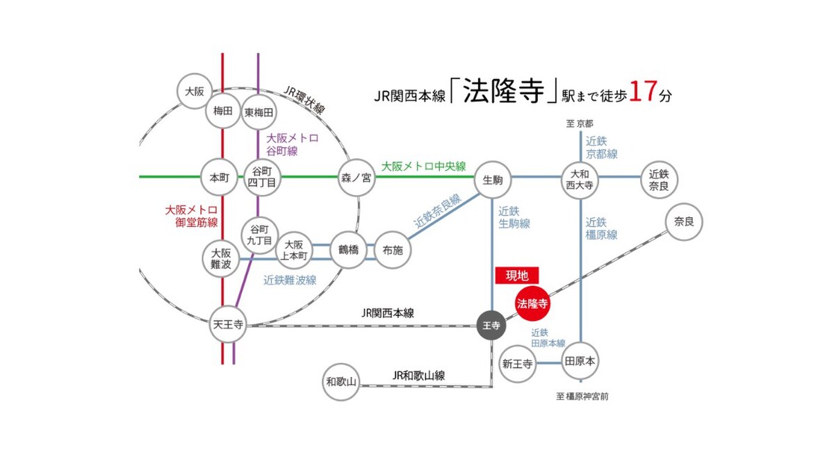 - JR関西本線「法隆寺」駅 徒歩17分JR関西本線「大和小泉」駅 徒歩32分近鉄田原本線「佐味田川」駅 徒歩49分