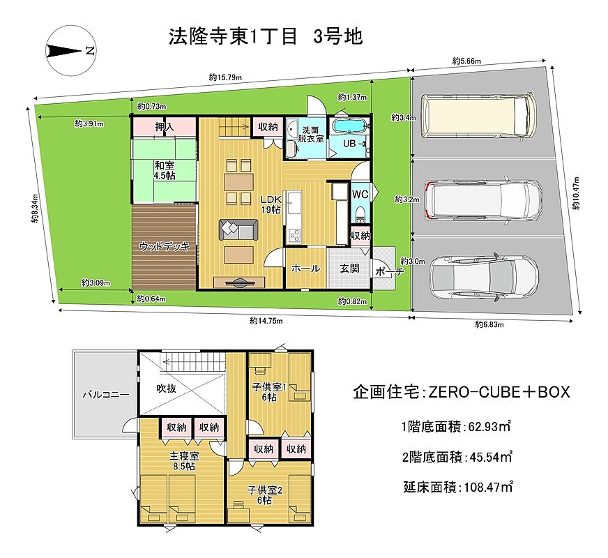 建築条件付き土地 斑鳩町法隆寺東1丁目 全5区画 残2区画 60坪以上 ZERO-CUBE参考プラン 3,220万円~